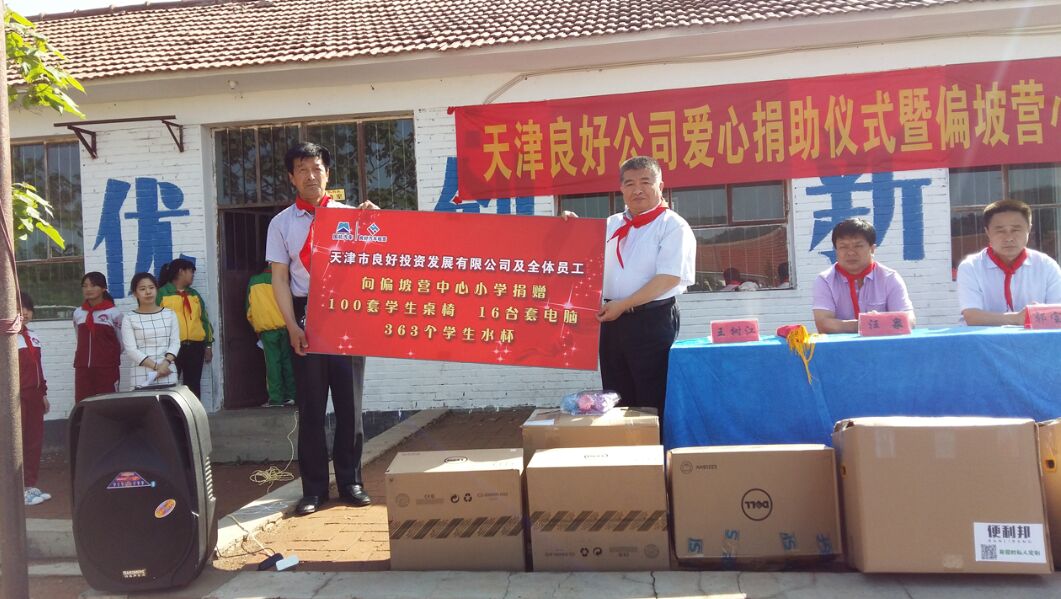 6月1日8:00良好公司爱心捐助仪式暨偏坡营小学庆“六一”活动正式开始,隆化县教委和偏坡营乡政府的领导、偏坡营小学全体师生参加了此项活动。首先县教委、乡政府领导对良好公司20名代表的到来表示热烈欢迎,对良好公司和全体员工的爱心助学活动表示衷心的感谢。随后公司常务副总经理王颖与偏坡营小学校长王树江进行了助学活动物品的捐赠与受赠仪式,学校王校长向良好公司赠送了“捐资献爱心、助学情意浓”的锦旗,并代表全体师生对我公司和员工的无私捐助表示深深的感谢。接下来部分党团员参加了 “六一”少先队入队仪式,为新加入少先队的小学生佩戴了红领巾,并参与表演了庆六一文艺节目,大家观看了孩子们的文艺演出、体育活动等,与孩子们一起度过了一个愉快、有意义的“六一”儿童节。